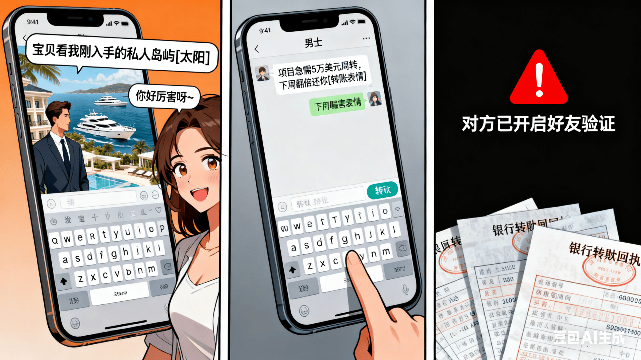 近年来,针对想找海外男士的单身女性的婚恋诈骗已逐渐升级,比传统骗术更具迷惑性。传统骗局中,骗子多假冒士兵、军官、医生、IT 工程师,靠帅照吸引关注后,以 “行李被扣海关”“紧急用钱” 等借口直接骗钱;而升级后的套路堪称 “连环计”:长期情感铺垫 + 真实见面假象 + 投资陷阱收尾,让受害者在深信不疑中倾家荡产。