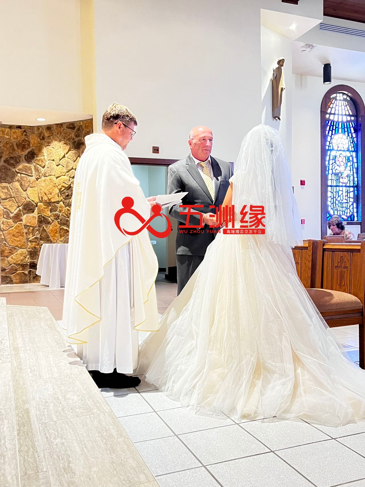 芳姐的故事,不是偶然。从 2023 年 7 月加入五洲缘,到 2024 年 2 月飞往美国与 T 先生见面,到2024年7月登记结婚,再到 2025 年 7 月举办浪漫的教堂婚礼,每一步都离不开五洲缘的专业支持: