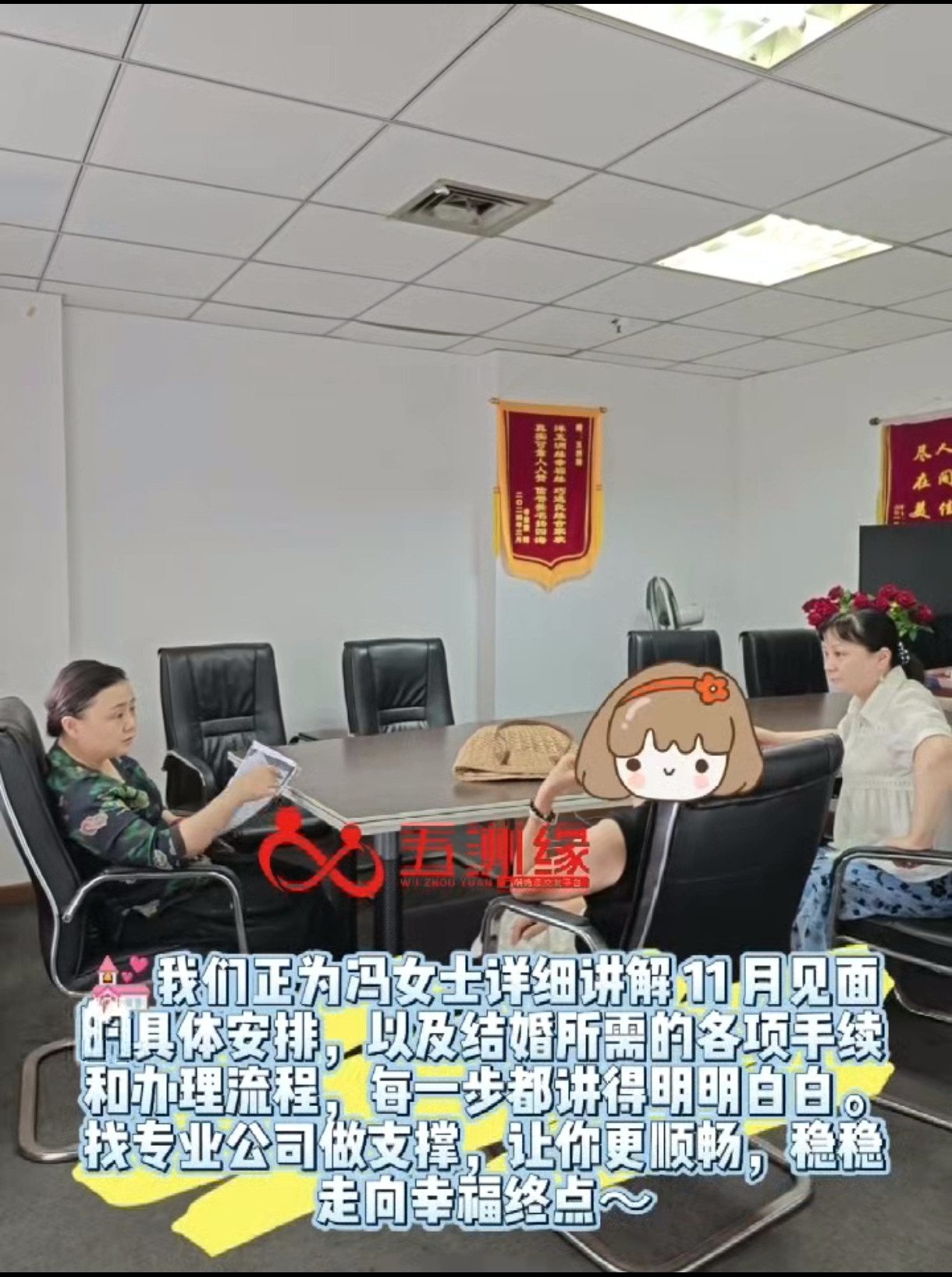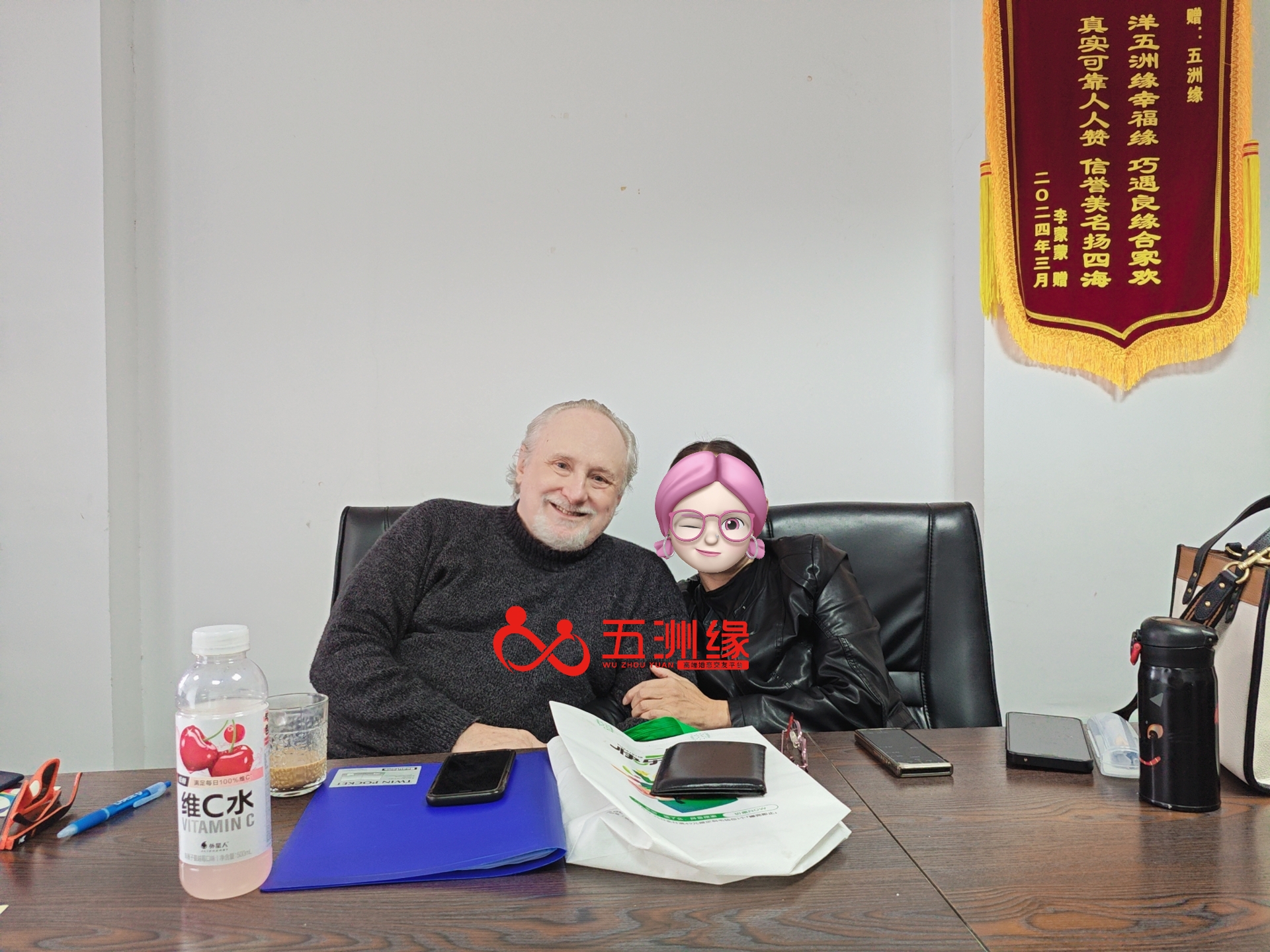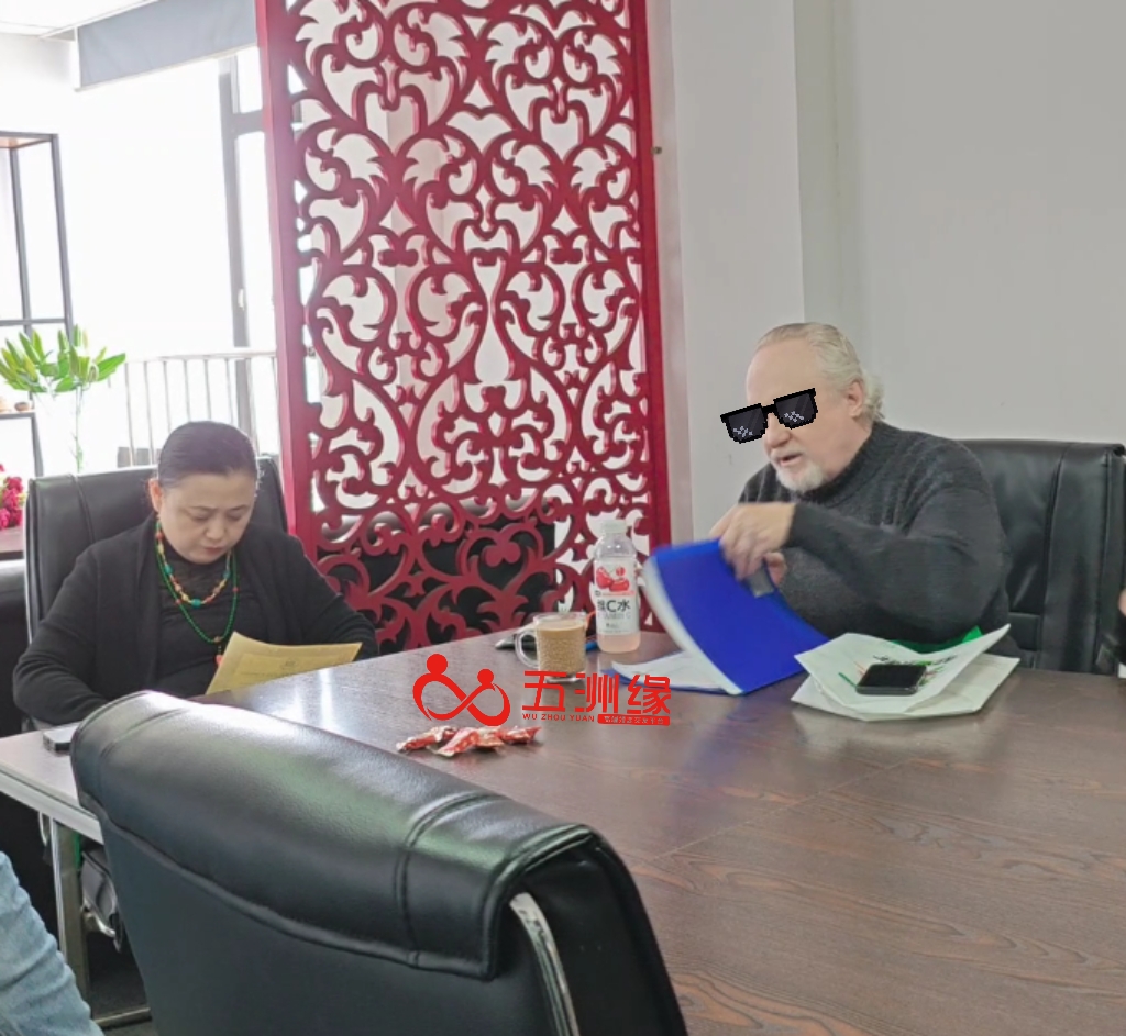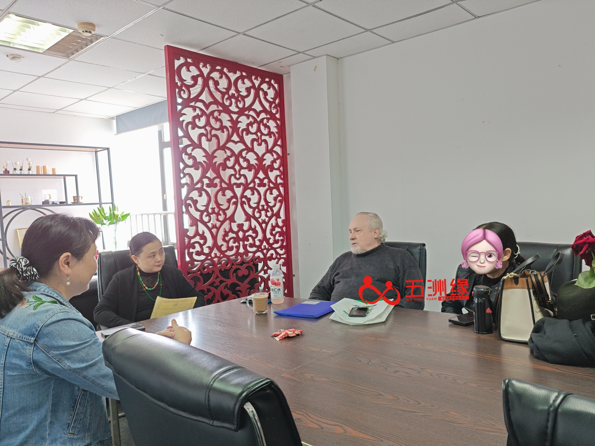 第二天,两人的正式见面安排在五洲缘公司。五洲缘翻译人员全程在旁协助交流,经验丰富的翻译小姐姐用流畅的双语沟通,巧妙化解了初次见面的局促与紧张,让现场氛围始终轻松融洽。按照五洲缘的见面流程,Nathen 主动拿出个人文件供五洲缘查阅,这份坦诚与认真,也让 L 女士更加笃定自己的选择。