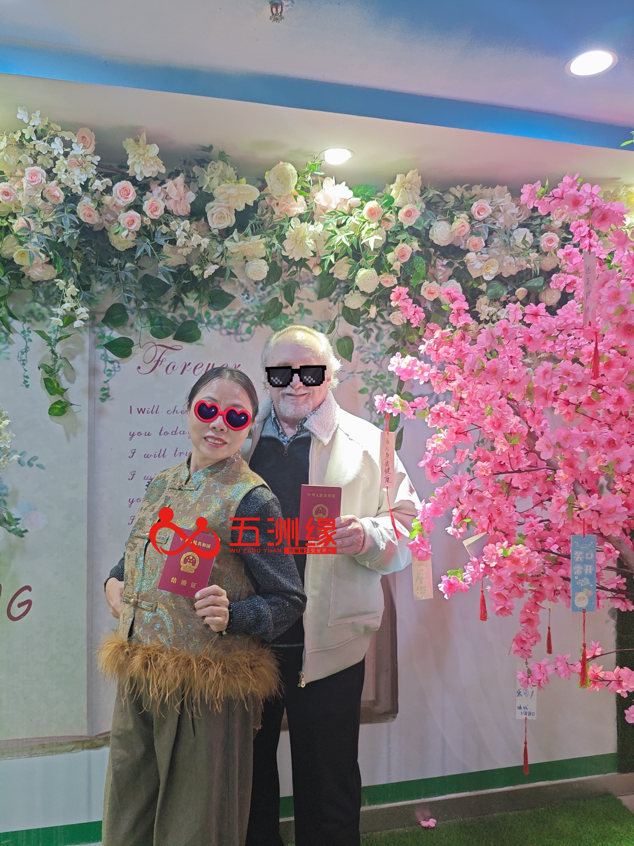 2025年11月12日,五洲缘的办公室里被一份甜蜜喜讯填满——会员L女士与美国农场主Nathen在重庆登记结婚!从L女士带着对幸福的期许加入五洲缘,借助专业平台的力量开启寻爱之路,到与大洋彼岸的Nathen从陌生到相识,携手步入婚姻殿堂,都离不开五洲缘团队的专业服务。