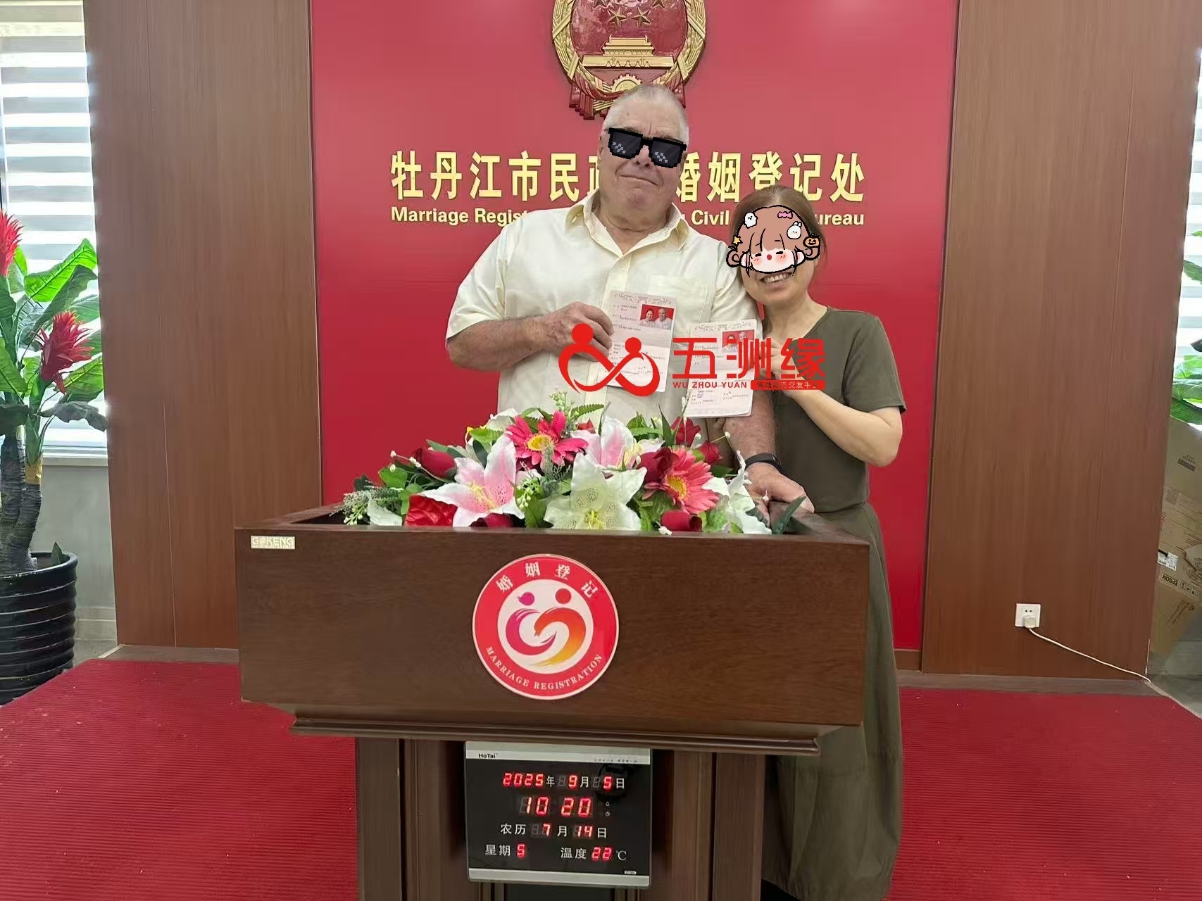 这场 “极速爱情” 虽步履匆匆,却从未缺失郑重与真诚。见面 5 天后,两人慎重考虑后决定共度余生。五洲缘团队全程助力,在翻译陪同下飞往沈阳办理 Bob 的单身证明,再前往牡丹江筹备登记事宜。2025 年 9 月 5 日,彦姐与 Bob 在牡丹江市民政局婚姻登记处领证结婚。Bob 动情表示:“这位年轻女士是我一生都在寻找的那个人。” 如今Bob已经回到美国,积极地准备材料,于2025年10月为彦姐提交了移民申请,缴纳了各种费用。目前彦姐正在等待签证消息中。