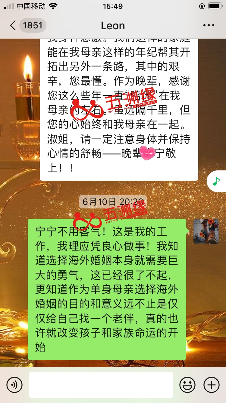 11 月 12 日,两人在五洲缘团队的见证下在重庆涉外婚姻登记处领证。婚后,两人商定在珠海共度蜜月。她特意发来语音感谢五洲缘洋洋老师和团队的助力,让这份跨国爱情圆满落地。