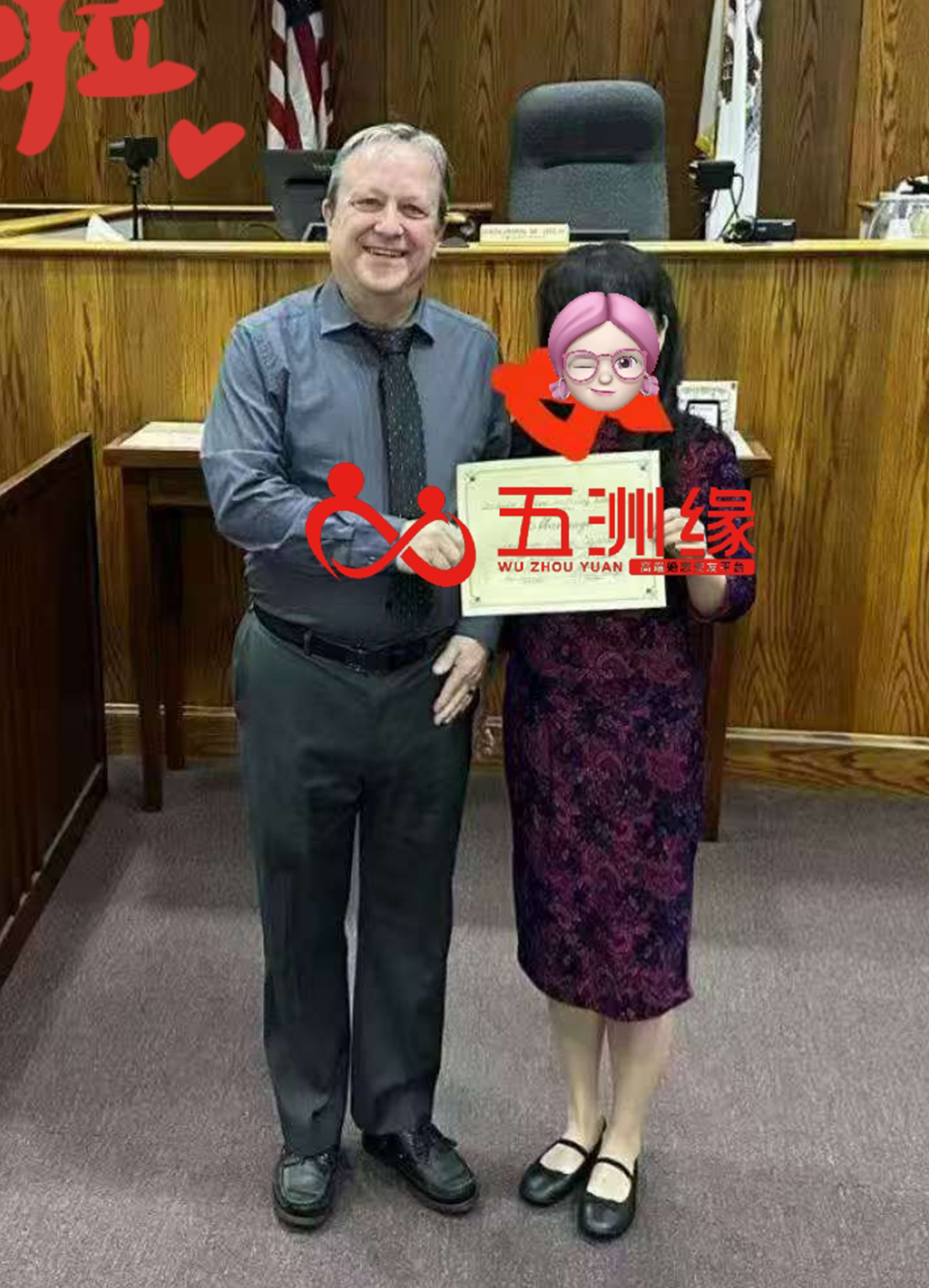 在五洲缘翻译团队的协助下,两人通过微信视频每周定期沟通。Chris C 耐心纠正安姐的英语发音,安姐则努力提升表达能力。从最初的书信润色到后来的基本口语交流,爱意在双向奔赴中逐渐升温。2023 年疫情解封后,两人在香港首次见面,如同久别重逢的恋人般默契十足。2025 年 3 月,安姐持未婚签证飞往美国,4 月 9 日,两人正式登记结婚,在牧师的见证下许下一生相伴的誓言。