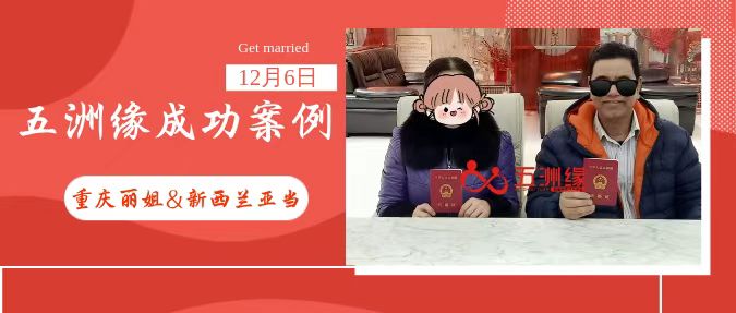 52岁五洲缘会员丽姐在五洲缘团队全程帮助下,尤其是情感咨询沈晴老师的专业婚恋指导,签证部的专业加持,从择偶匹配、情感推进到出国签证,全程无忧。2024年12月6日与新西兰60岁房屋租赁公司的亚当先生顺利步入婚姻。